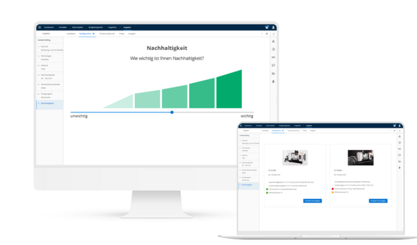 Fragen zur Relevanz von Nachhaltigkeitsaspekten können in den Guided Selling Prozess aufgenommen und die Klassifizierung der Produkte so angepasst werden, dass diese bei der Produktempfehlung ins Gewicht fallen.